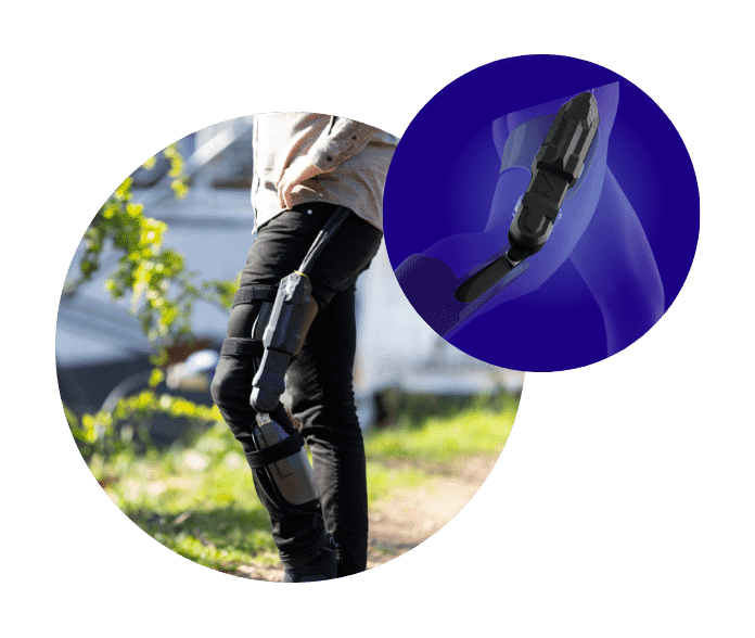 Notre direction assistée intelligente de genou permet à l'orthoprothésiste de motoriser une orthèse cruro-pédieuse (KAFO) afin d'améliorer la mobilité quotidienne de son patient.